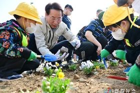 전국연합뉴스 김재업 기자 | 서울 용산구가 지난 30일 오후 1시 30분, 종합행정타운(녹사평대로 150) 2층 야외광장에서 주민들의 새로운 휴식처가 될 주민친화 ‘힐링정원’ 준공식을 개최했다. 이번 사업은 2010년 개청 이후 16년이 경과한 구청사의 로비와 광장을 주민 중심의 개방형 공간으로 재편하기 위해 추진됐다. 힐링정원 야외광장은 1400㎡ 규모로, 노후 보도블록 교체와 휴게공간 확충, 야간 경관조명 설치 등에 더해, 신규 식재 작업을 마치고 녹음을 확충했다. 올해 1월 먼저 선보인 내부 힐링정원은 청사 민원실에 자연 요소를 접목해 주민들이 보다 편안한 환경에서 행정 서비스를 이용하고, 휴식과 소통을 함께 누릴 수 있는 공간으로 재구성했다. 이날 준공식에는 박희영 용산구청장을 비롯, 김성철 용산구의회 의장, 지역 주민과 상인, 해방촌 마을정원사 등 120여 명이 참석했다. 행사는 경과보고, 기념사, 장미 마술나무(매직트리)를 활용한 기념 퍼포먼스, 색줄 자르기(테이프 커팅) 순으로 진행됐다. 특히, 준공식 이후에는 2026년 식목일을 기념한 ‘반려나무 나눔행사’와 정원 가꾸기 체험이 이어졌