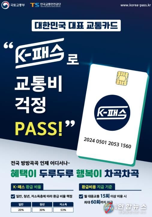 K-패스는 월 15회 이상 대중교통을 이용하면 계층에 따라 월 이용금액의 20%부터 53%를 최대 60회까지 환급해 주는 교통카드다.