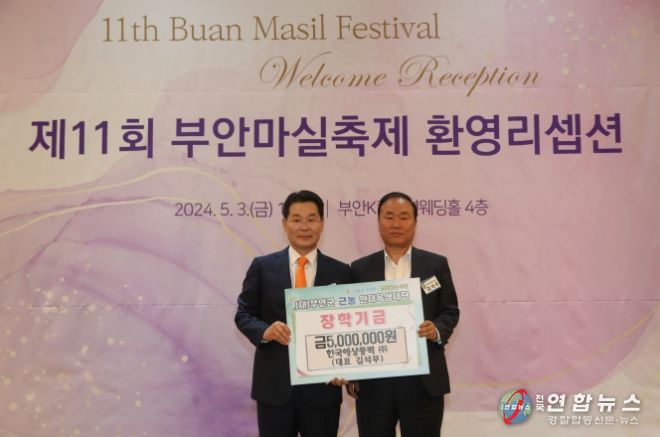전국연합뉴스 김현호 기자 | 한국해상풍력(대표 김석무)은 지난 3일 부안군 근농인재육성재단에 지역인재육성을 위해 써달라며 장학금 500만원을 기탁했다.