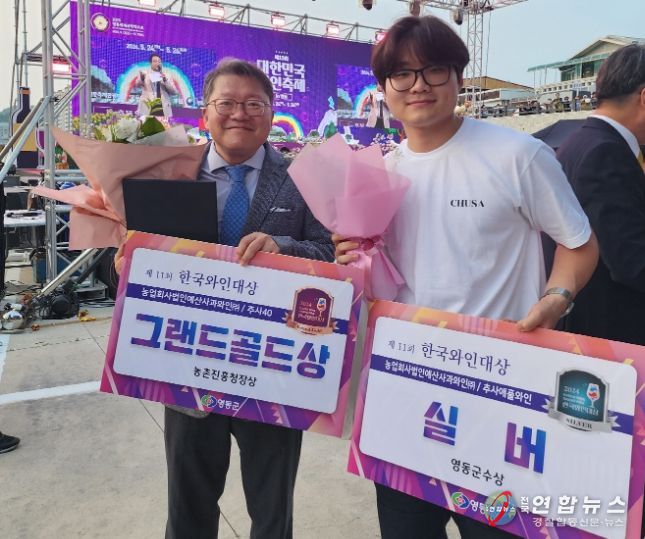 전국연합뉴스 김용태 기자 | 예산군은 2024년 한국와인대상에서 고덕면 소재 농업회사법인 예산사과와인㈜의 ‘추사40’이 증류주 최고상인 그랜드골드 상을, ‘추사애플와인’이 실버상을 각각 수상했다고 밝혔다.