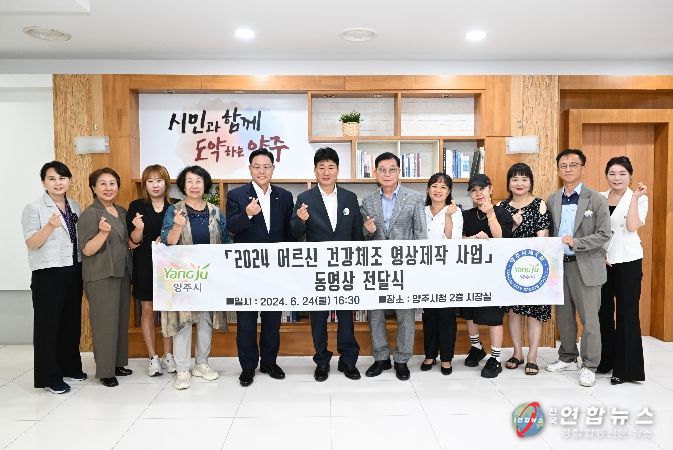 전국연합뉴스 박점규 기자 | 강수현 양주시장이 24일 오후 2층 시장실에서 열린 ‘2024년 건강 체조 영상’ 기부식에 참석하고 어르신들의 건강하고 활기찬 노후 생활을 응원했다.