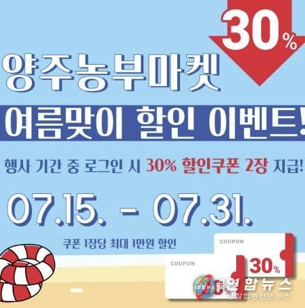 이번 행사는 오는 15일부터 31일까지 진행하며 기간 내 ‘양주농부마켓’ 로그인 시 30% 할인쿠폰 2장이 지급될 예정이다.