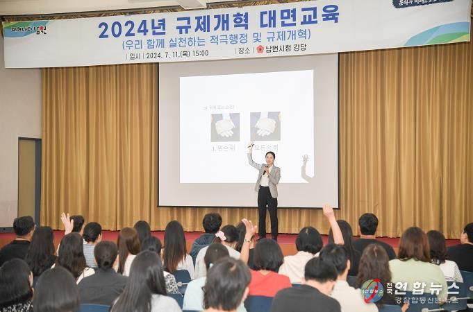 전국연합뉴스 최성용 기자 | 남원시는 규제혁신에 대한 공직자의 관심과 이해도를 높이고, 업무 역량을 강화하기 위해 7월 11일 직원 200여 명을 대상으로 ‘2024년 규제개혁 교육’을 실시했다고 밝혔다.