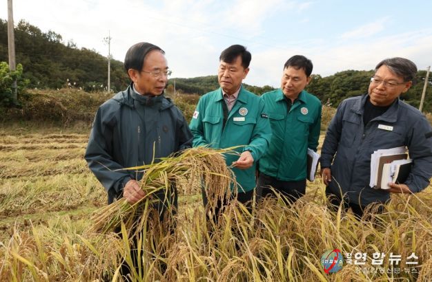 전국연합뉴스 최성용 기자 | 심 민 임실군수가 올해 처음으로 시험 재배한 가루쌀‘바로미2’첫 수확 현장을 찾아 가루쌀 확대 장려에 앞장섰다.
