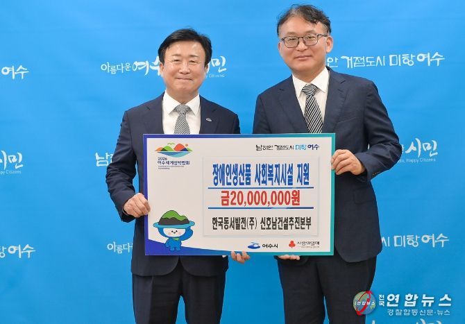 정기명 여수시장은 “지역사회와 이웃을 위한 한국동서발전의 따뜻한 나눔에 깊이 감사드린다”며 “이번 후원이 장애인의 일자리 확대와 복지시설 지원에 큰 힘이 될 것”이라고 말했다.