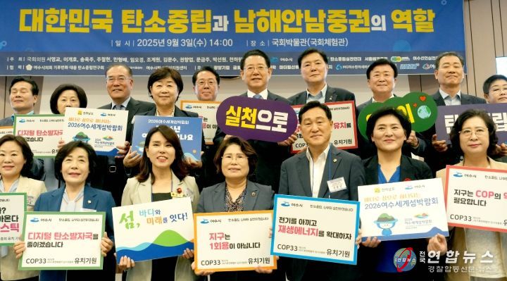 전국연합뉴스 김철환 기자 | 전라남도는 3일 국회박물관에서 ‘대한민국 탄소중립과 남해안 남중권 역할’이라는 주제로 국회포럼이 열려 탄소중립과 유엔기후변화협약 당사국총회(COP33) 유치 의지를 다졌다고 밝혔다.