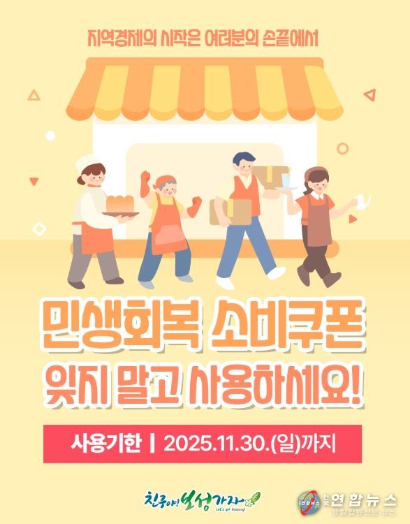 전국연합뉴스 김철환 기자 | 보성군은 ‘민생회복 소비쿠폰’의 조기 사용을 유도하고 지역 소비 활성화를 도모하기 위해 9월 한 달간 ‘소비 촉진 주간’을 운영한다고 밝혔다.