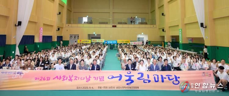 전국연합뉴스 김철환 기자 | 순천시는 지난 4일 순천시어울림체육센터에서 사회복지시설 종사자, 관계 공무원 등 300여 명이 참석한 가운데 제26회 사회복지의 날 기념행사를 성황리에 개최했다고 밝혔다.