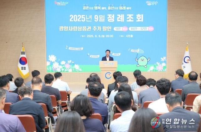 전국연합뉴스 김철환 기자 | 광양시(시장 정인화)는 9월 8일 시청 시민홀에서 공직자 150여 명이 참석한 가운데 9월 정례조회를 개최했다.