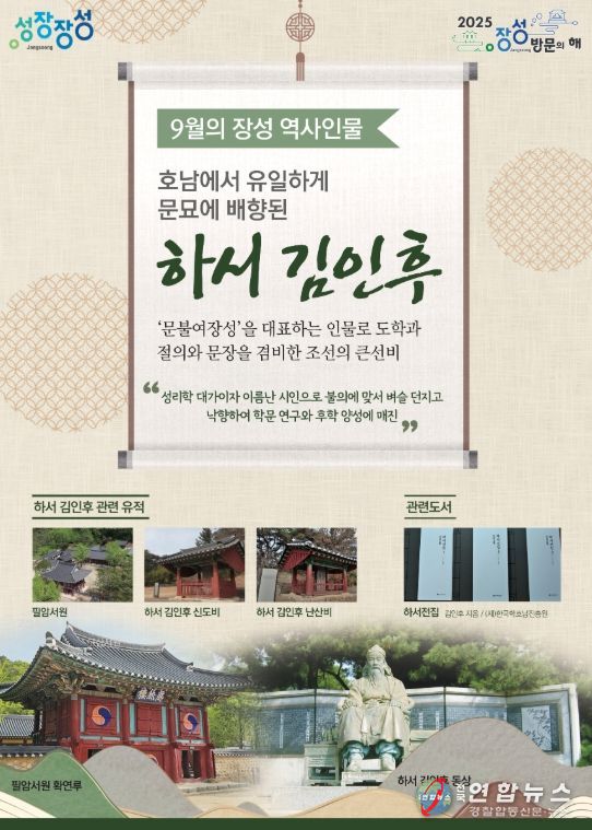 전국연합뉴스 김철환 기자 | 장성군이 9월의 역사 인물로 하서 김인후(1510~1560) 선생을 선정했다.