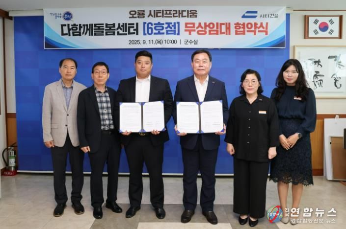 전국연합뉴스 김철환 기자 | 전남 무안군은 11일 오룡지구 시티프라디움 입주자대표회의와 함께 '무안군 다함께돌봄센터 6호점' 설치를 위한 무상 임대 협약을 체결했다.