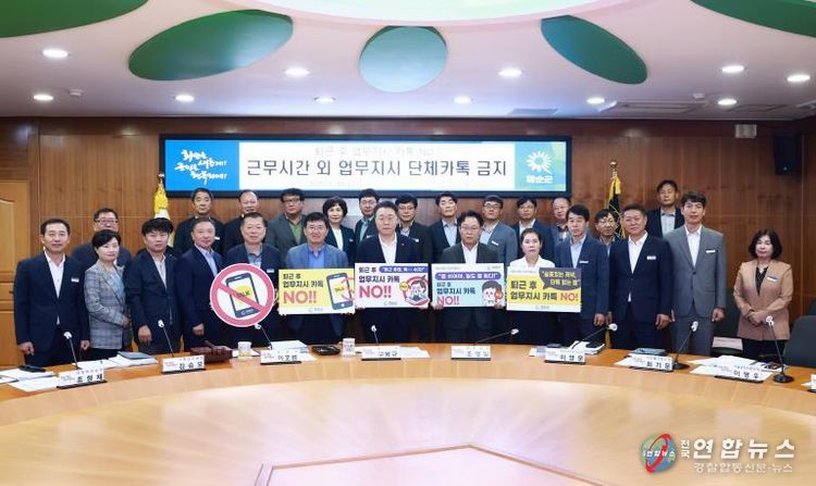 전국연합뉴스 김철환 기자 | 화순군은 16일 구복규 화순군수, 이호범 부군수 등 간부 공무원들이 참여해 ‘퇴근 후 업무 지시 카톡 NO!’ 캠페인을 펼쳤다고 밝혔다.