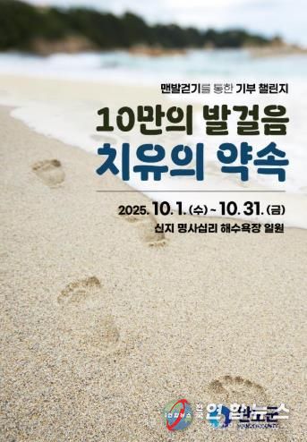 전국연합뉴스 김철환 기자 | 완도군은 해양치유센터 이용객 10만 명과 해양기후·문화, 맨발 걷기 등 누적 치유객 50만 명 달성을 기념해 10월 1일부터 31일까지 한 달간 신지 명사십리 해수욕장 일원에서 ‘해양치유 맨발 걷기 나눔 챌린지’를 진행한다.