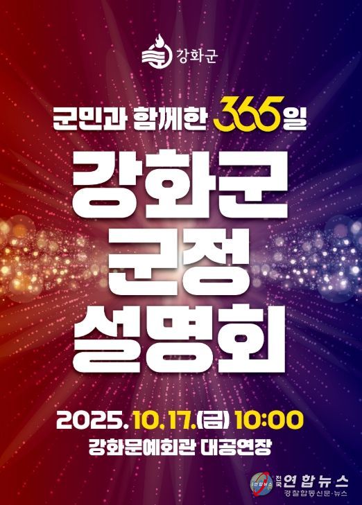 전국연합뉴스 고기남 기자 | 강화군은 오는 10월 17일 오전 10시 강화문예회관에서 “군민과 함께한 365일, 강화군 군정 설명회”를 개최한다.