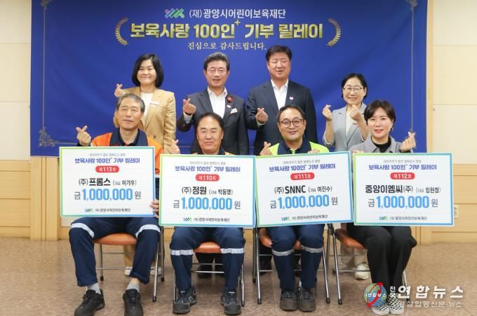 정인화 광양시장은 “우리 아이들을 위해 나눔을 실천해 주신 후원자 여러분께 감사드린다. 모아주신 정성은 아이들의 웃음을 지키고, 부모님들의 양육 부담을 덜어주는 큰 힘이 되고 있다. 시는 앞으로도 재단과 함께 아이들이 행복하게 자랄 수 있는 보육환경 조성에 최선을 다하겠다”고 말했다.