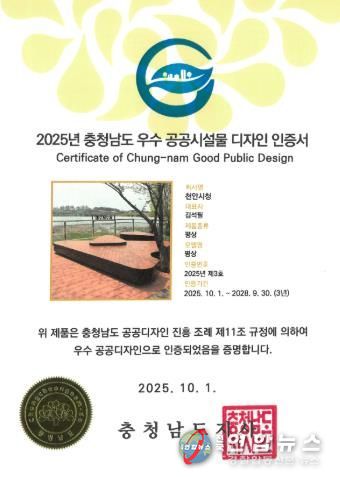 전국연합뉴스 김대환 기자 | 천안시는 ‘2025 제16회 충청남도 우수공공시설물 디자인 인증제’에서 평상 디자인으로 공공기관 최초 인증을 받았다고 22일 밝혔다.