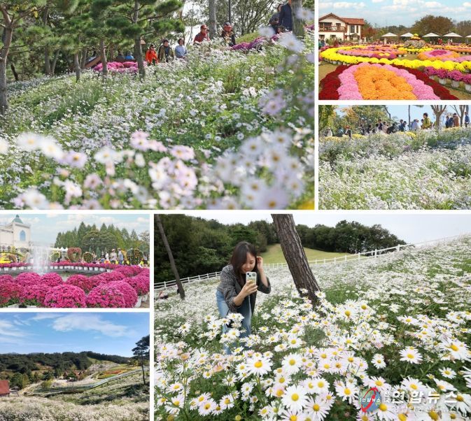 특히, 바람의 언덕 일대에서는 형형색색의 국화꽃 사이로 새하얀 구절초가 어우러져, 사시사철 푸른 소나무와 함께 한 폭의 수채화를 연상케 한다.