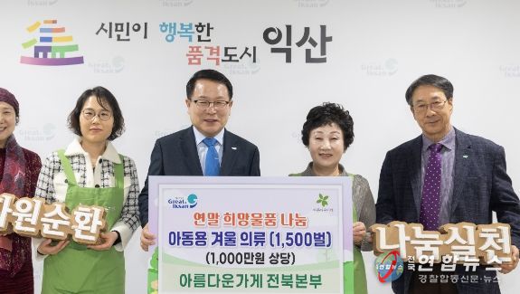 비영리 공익단체인 '아름다운가게전북본부'는 24일 익산시에 겨울 아동의류 1,500벌을 기탁했다.