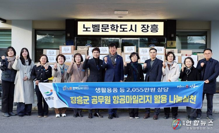 전국연합뉴스 김철환 기자 | 장흥군 공무원 122명이 공적 항공마일리지를 활용해 마련한 20,558,250원 상당의 생필품 197점을 지역 취약계층에 전달했다.