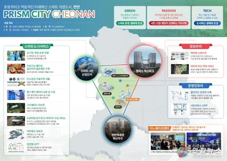 천안시는 ‘포용적이고 역동적인 미래 혁신 스마트 거점도시 조성’을 목표로 정부의 AI 국가 전략에 맞춘 지역 특화 사업을 본격 추진한다고 20일 밝혔다.