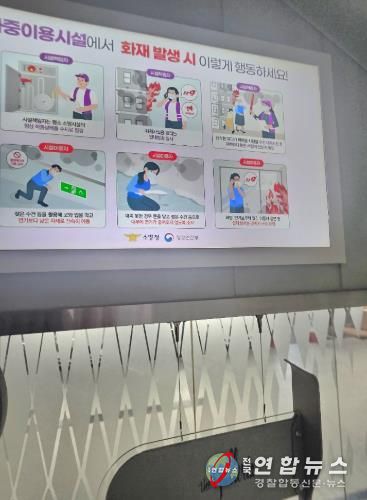 전국연합뉴스 김대환 기자 | 천안서북소방서는 최근 갤러리아(주) 센터시티와 협력해 승강기 내 안내 모니터를 통해 다중이용시설 화재 발생 시 시민들이 지켜야 할 행동요령을 홍보했다.
