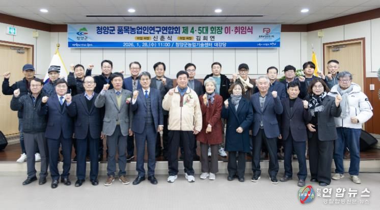 전국연합뉴스 김용태 기자 | 청양군은 지난 28일 농업기술센터에서 품목농업인연구연합회 회원 및 내빈 등 100여 명이 참석한 가운데 연합회장 이·취임식을 개최했다고 밝혔다.