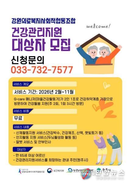 전국연합뉴스 유근택 기자 | 원주시는 2026년 노인일자리 신규사업으로 ‘G케어매니저(마을건강활동가)’ 사업을 추진한다.