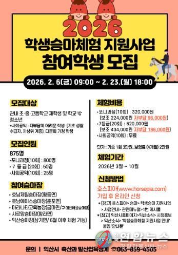 시는 지역의 우수한 승마 인프라를 활용해 '2026년 학생승마체험 지원사업'을 추진한다고 5일 밝혔다.
