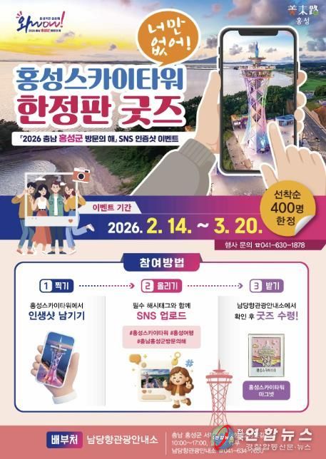 군에 따르면 2026년 ‘충남 홍성군 방문의 해’를 맞아 홍성군은 소장 욕구를 자극하는 한정판 홍성스카이타워 굿즈를 내걸고 파격적인 SNS 인증 이벤트를 전개한다.