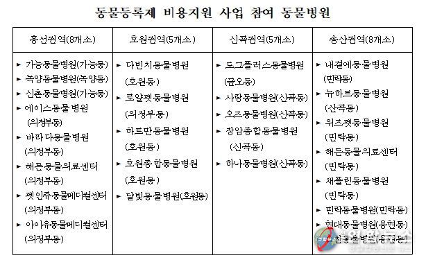 동물등록제는 반려동물에 대한 소유자의 책임의식을 강화하고 동물보호 의식을 제고하며, 유기‧유실을 방지하기 위해 2014년 1월부터 시행 중인 제도이며, 올해는 관내 동물병원 26개소가 사업에 참여한다.