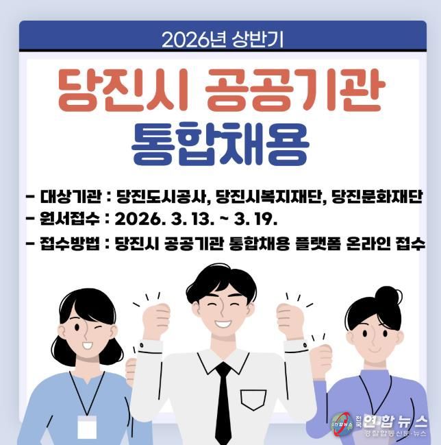 전국연합뉴스 김용태 기자 | 당진도시공사는 시민이 신뢰하고 지속가능한 당진 미래를 선도하는 공기업으로 도약하기 위해 2026년 제3회 일반직 직원 공개채용을 실시한다고 11일 밝혔다.