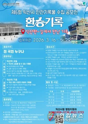 익산시는 오는 16일부터 5월 29일까지 '제6회 익산시 민간기록물 수집 공모전'을 개최한다.