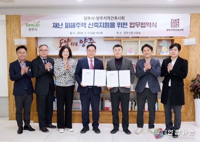 협약식은 지난 13일 양주시청 시장실에서 열렸으며, 양주시는 재난 피해 주택 신축 과정에서 행정 지원을, 양주지역건축사회는 건축 전문가 지원을 맡아 주거 복구를 돕기로 했다.