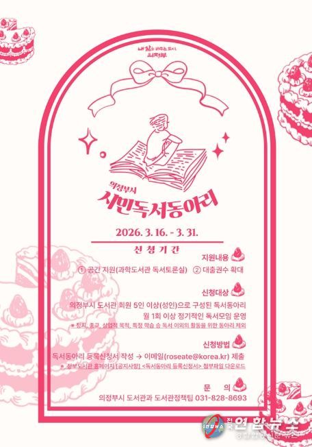 전국연합뉴스 박점규 기자 | 의정부시는 독서공동체의 자발적 참여를 촉진하고 독서 문화의 기반을 마련하기 위해 ‘2026년 시민 독서동아리’를 운영한다.