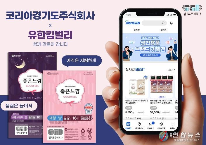 전국연합뉴스 조민준 기자 | 경기도주식회사가 운영하는 여성청소년 생리용품 온라인 쇼핑몰이 유한킴벌리와 협업해 공동기획 상품을 선보인다.