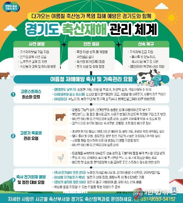 전국연합뉴스 조민준 기자 | 경기도가 올여름 무더위로부터 축산농가를 보호하기 위해 예산 지원과 현장점검을 아우르는 전방위적 대응에 나섰다.