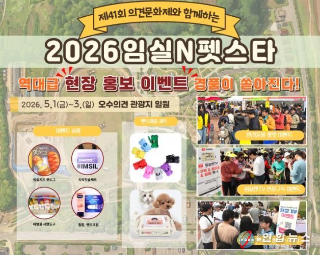 전국연합뉴스 최성용 기자 | 임실군이 오는 5월 1일부터 3일까지 임실 오수의견관광지에서 열리는 제41회 의견문화제와 함께하는‘2026 임실N펫스타’에서 반려견과 함께하는 방문객을 위한 맞춤형 현장 이벤트를 선보인다.