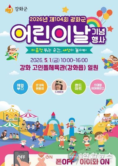 전국연합뉴스 기자 | 강화군은 제104회 어린이날을 맞아 오는 5월 1일 오전 10시부터 강화읍 고인돌체육관에서 어린이날 기념행사를 개최한다.