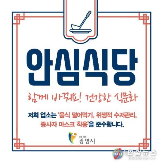 전국연합뉴스 조민준 기자 | 광명시가 시민이 안심하고 이용할 수 있는 깨끗한 식사 환경을 만들고 건강한 외식 문화를 뿌리내리기 위해 ‘2026년 신규 안심식당’ 참여업소를 오는 11월 30일까지 모집한다.