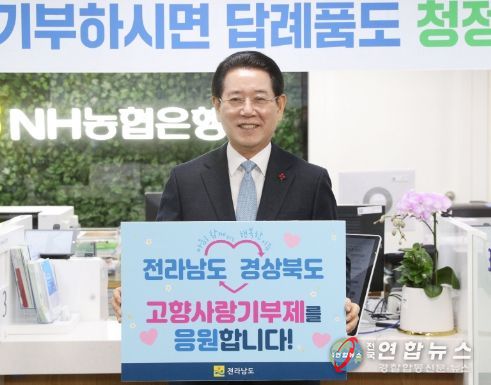 전라남도에 따르면 10일 오전 김영록 지사와 이철우 지사는 각각 NH농협은행 전남도청지점과 NH농협은행 경북본부를 방문해 500만 원을 서로 기부하고, 상호 지역의 고향사랑기부제 활성화를 응원했다.