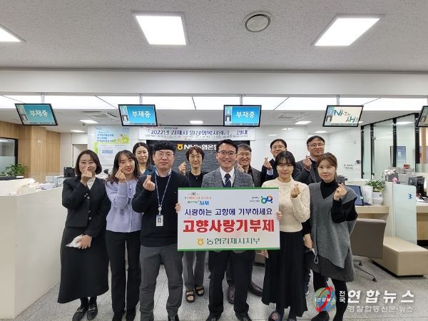 임인 지부장은 “고향사랑기부제의 성공적인 정착을 응원하며 ‘전북권 4대 도시로 웅비하는 김제’ 만들기에 적극 앞장서는 한편, 범농협 및 유관기관이 고향사랑기부에 적극 동참할 수 있는 마중물이 되도록 최선을 다하고, 농협의 오프라인 접수처 역할 등 제도의 조기 정착을 위해 노력하겠다”고 말했다.