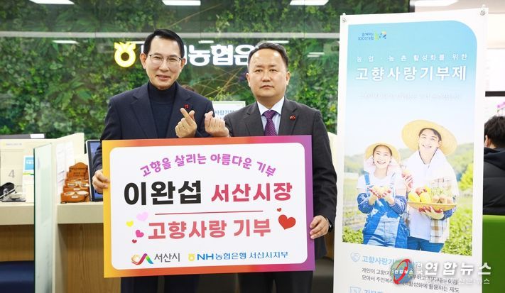 이완섭 서산시장이 17일 NH농협은행 서산시지부를 방문해 고향사랑기부제에 동참하고 이같이 말했다.