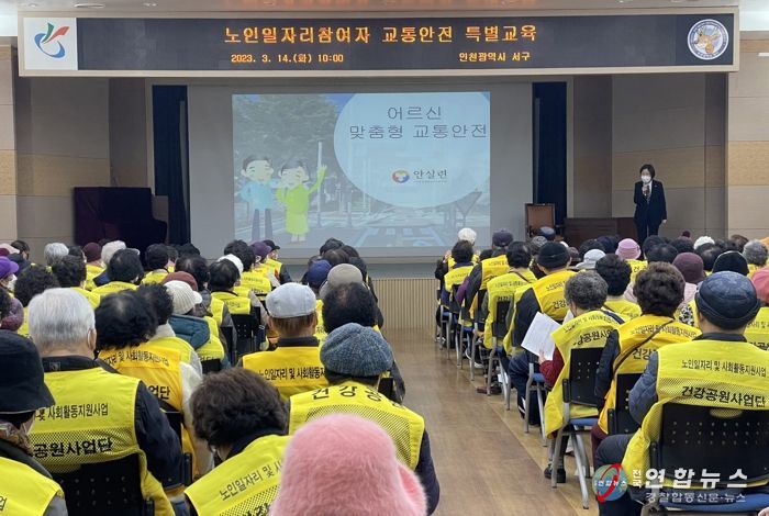 전국연합뉴스 박말출 기자 | 인천 서구는 어르신 교통사고 예방을 위해 서구노인인력개발센터 노인일자리 참여자 2,100여 명을 대상으로 지난 14일부터 오는 6월 29일까지 총 10회에 걸쳐 교통안전 특별교육을 진행한다고 밝혔다.