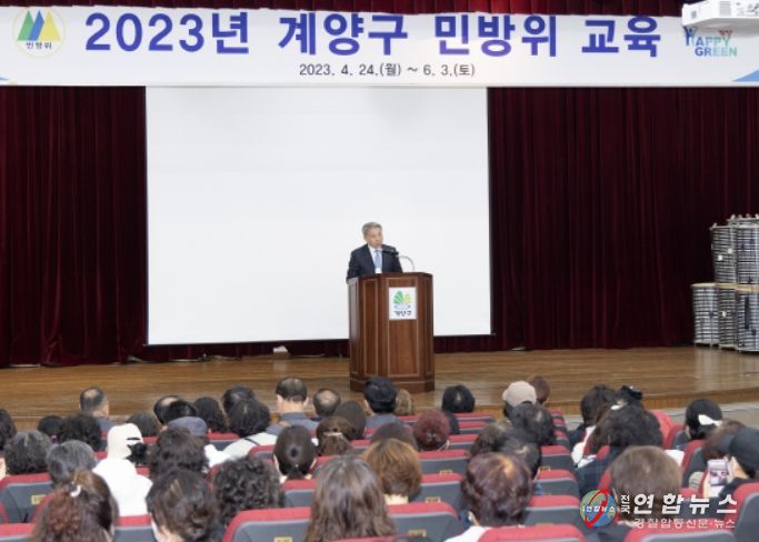 전국연합뉴스 박말출 기자 | 인천광역시 계양구는 26일과 27일 이틀간 계양구 민방위 교육장에서 지역 민방위 대장 540여 명을 대상으로 ‘민방위대장 교육’을 실시했다고 밝혔다.