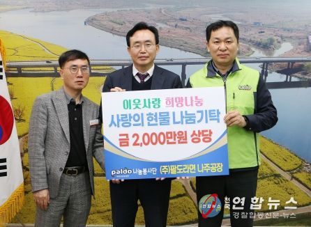 전국연합뉴스 김철환 기자 | 전라남도 나주시는 ㈜팔도라면에서 5월 가정의 달을 맞아 지역 저소득층을 위한 백미와 식품 선물꾸러미를 기탁했다고 18일 밝혔다.