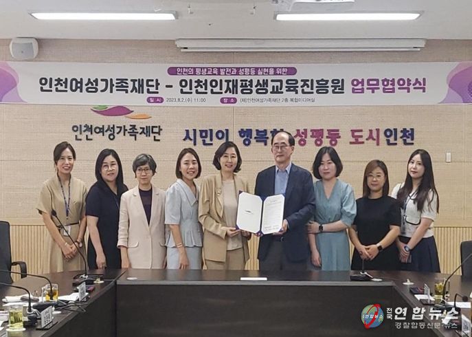 전국연합뉴스 김광원 기자 | 인천여성가족재단과 인천인재평생교육진흥원은 8월 2일 인천여성가족재단 복합미디어실에서 인천의 평생교육 발전과 성평등 실현을 목표로 상호 업무협약을 체결했다.