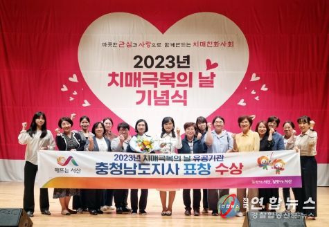 전국연합뉴스 김용태 기자 | 충남 서산시는 천안시청에서 열린 제16회 치매극복의 날 기념식에서 치매극복유공기관으로 선정돼 충청남도지사 표창을 수상했다고 21일 밝혔다.