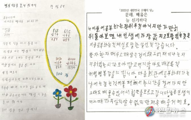 전국연합뉴스 김용태 기자 | 충남 서산시는 성인문해교육 마을학교 학습자 2명이 전국 및 충남 성인문해교육 시화전에서 시화 부문과 엽서쓰기 부문에서 각각 글아름상과 글첫걸음상을 수상했다고 밝혔다.