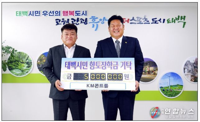 전국연합뉴스 권찬규 기자 | 태백시는 지난 4일 이태복 KM콘트롤 대표가 태백시청을 방문해 지역우수인재 양성을 위해 써달라며 장학금 5백만 원을 기탁했다고 전했다.