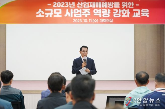 전국연합뉴스 김용태 기자 | 충남 서산시는 지난 11일 시청 대회의실에서 관내 민간 사업장 대표와 관리감독자 등 100여 명을 대상으로 ‘산업재해예방을 위한 소규모 사업주 역량 강화 교육’을 실시했다고 밝혔다.
